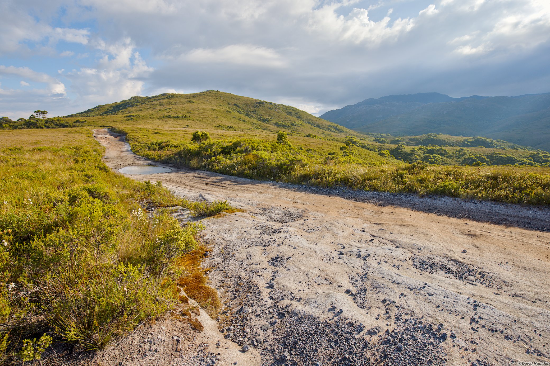 This is an easy four day walk south from Pieman Heads on the west coast of Tasmania. A lot of the walk is on well-used vehicle tracks which are badly eroded in places, and it passes many shacks and a wind farm on the way to Granville Harbour. It's not exactly a pristine wilderness experience, but worth doing all the same. The walk finishes at the end of Climies Track near Trial Harbour, and you'll need to leave a vehicle there or organise some other transport at the end of the walk.
